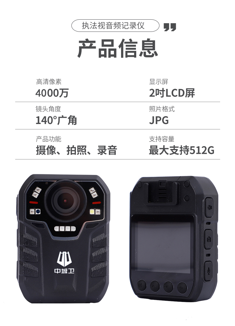 12.顶部人性化“电源”“工作”指示灯,给执法使用带来更多便捷;