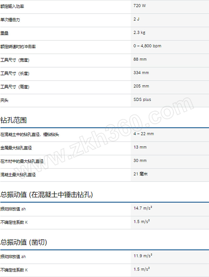 强大的720瓦电机和2.0焦冲击能量,可用于混凝土(直径可达22毫米)的有效加工 三模式锤钻,用于锤钻、钻削和凿削 - 确保通用性和令人信服的工作效果 紧凑型锤钻提供随手可得的专业博世锤钻性能