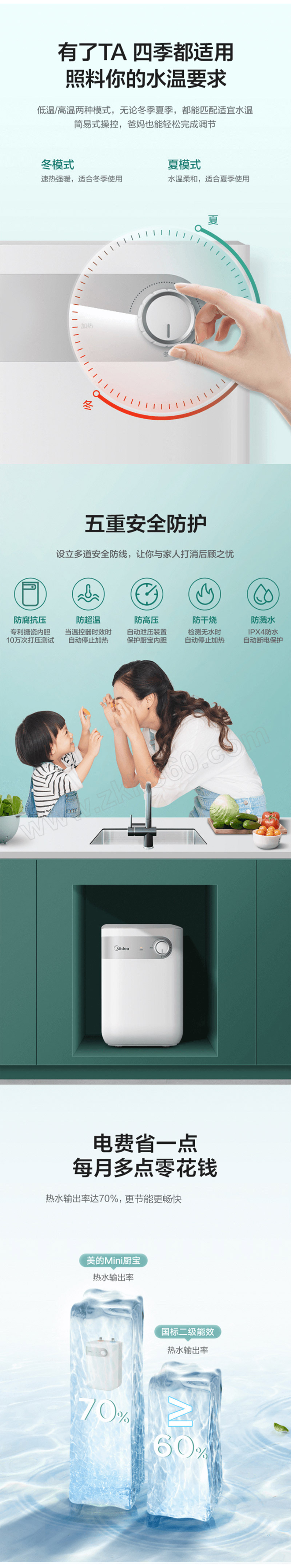 ·搪瓷内胆 ·1650W加热功率 ·小巧安装灵活 ·全自动补水 ·速热省水节能 ·低温高温两种模式 ·智能五重防护24小时守护