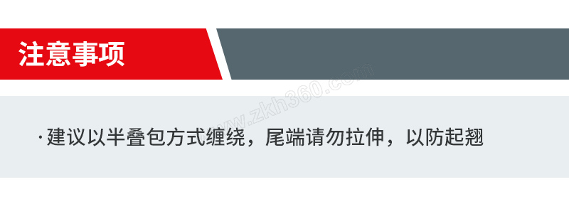 ·建议以半叠包方式缠绕,尾端请勿拉伸,以防起翘
