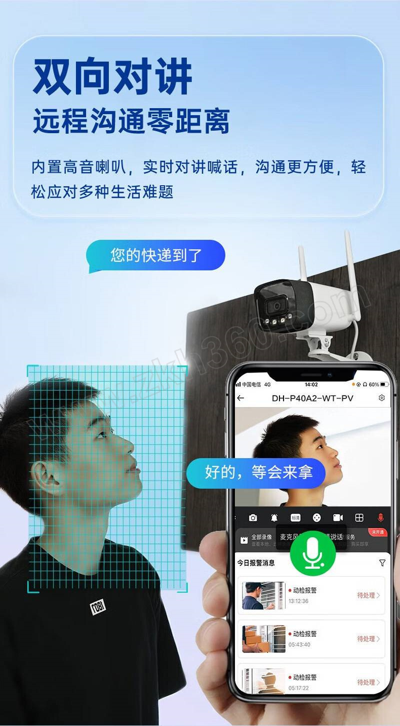 去购物车·400万无线高清摄像头,全彩夜视,声光警戒,支持对讲