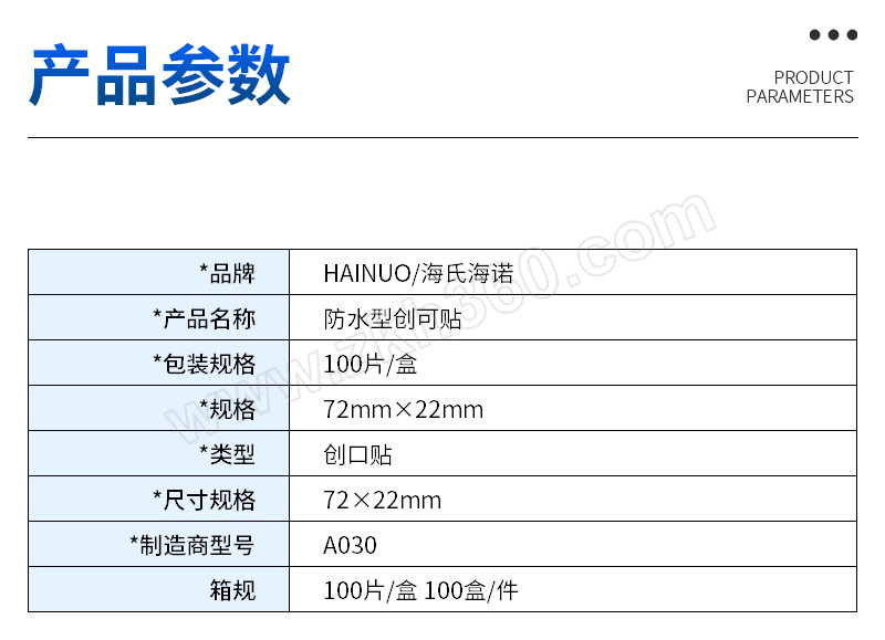 100片/盒72mm×22mm创口贴72×22mm100片/盒 100盒/件A030HAINUO/海氏海诺防水型创可贴100片/盒 100盒/件72×22mm 100片