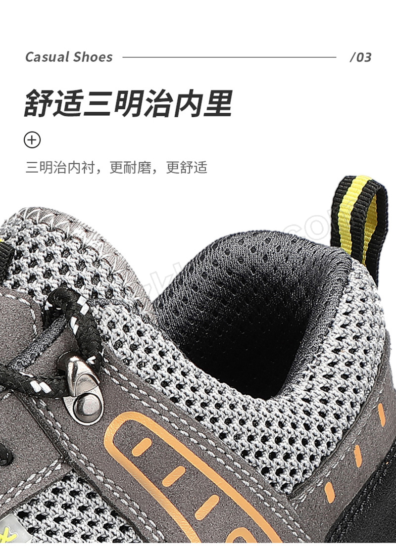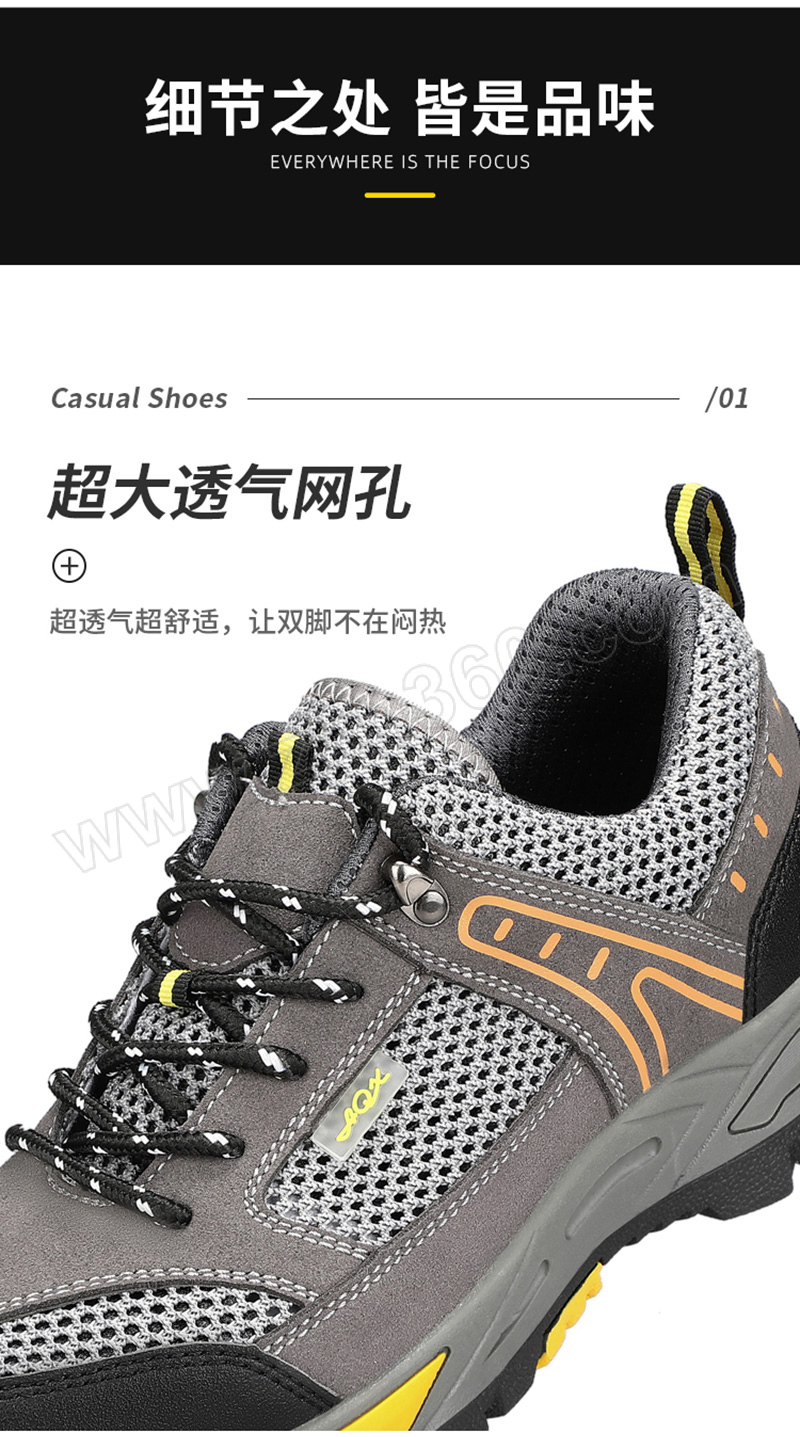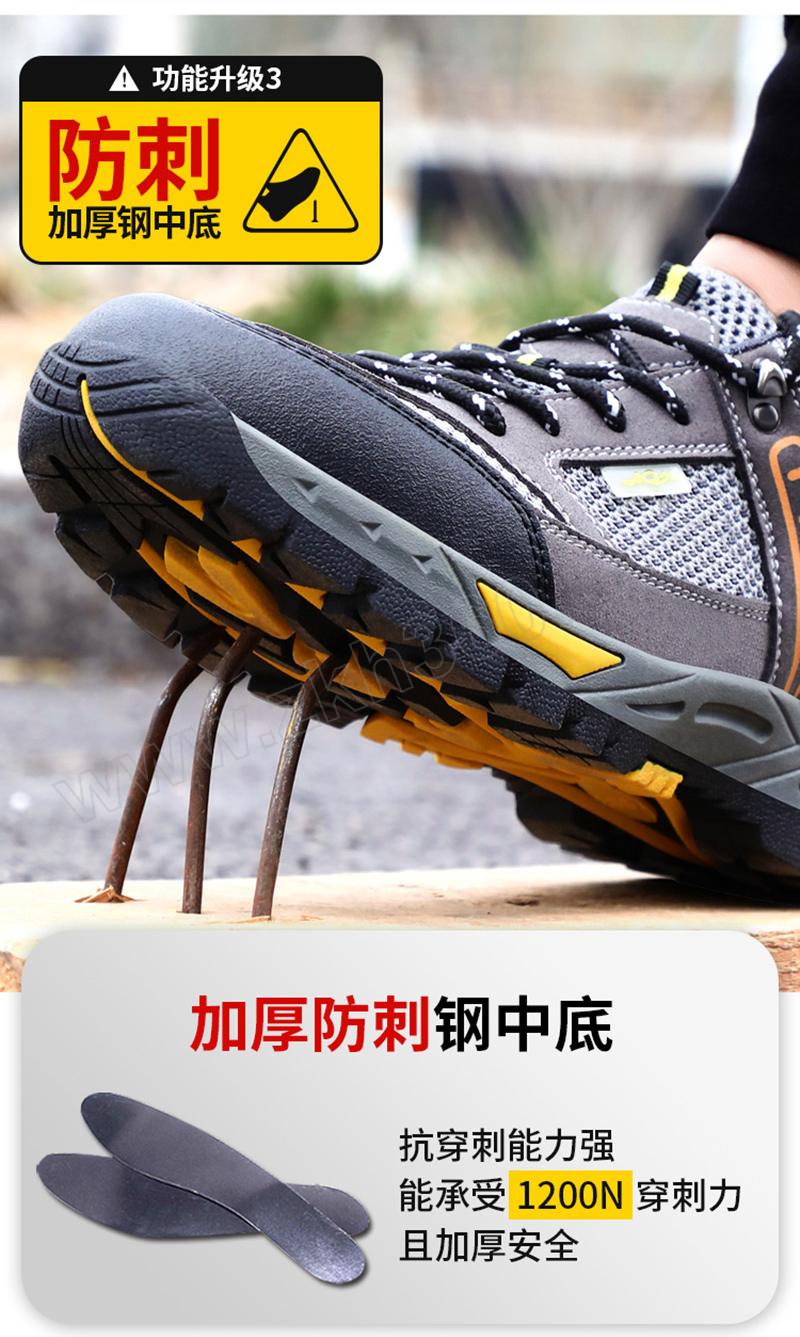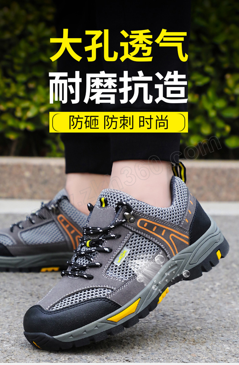 ·防砸防刺穿,鞋底耐磨橡胶底,透气大孔网布 ·鞋帮面皮料不耐强酸强碱,不耐重油,不适合重油污和强酸强碱环境使用